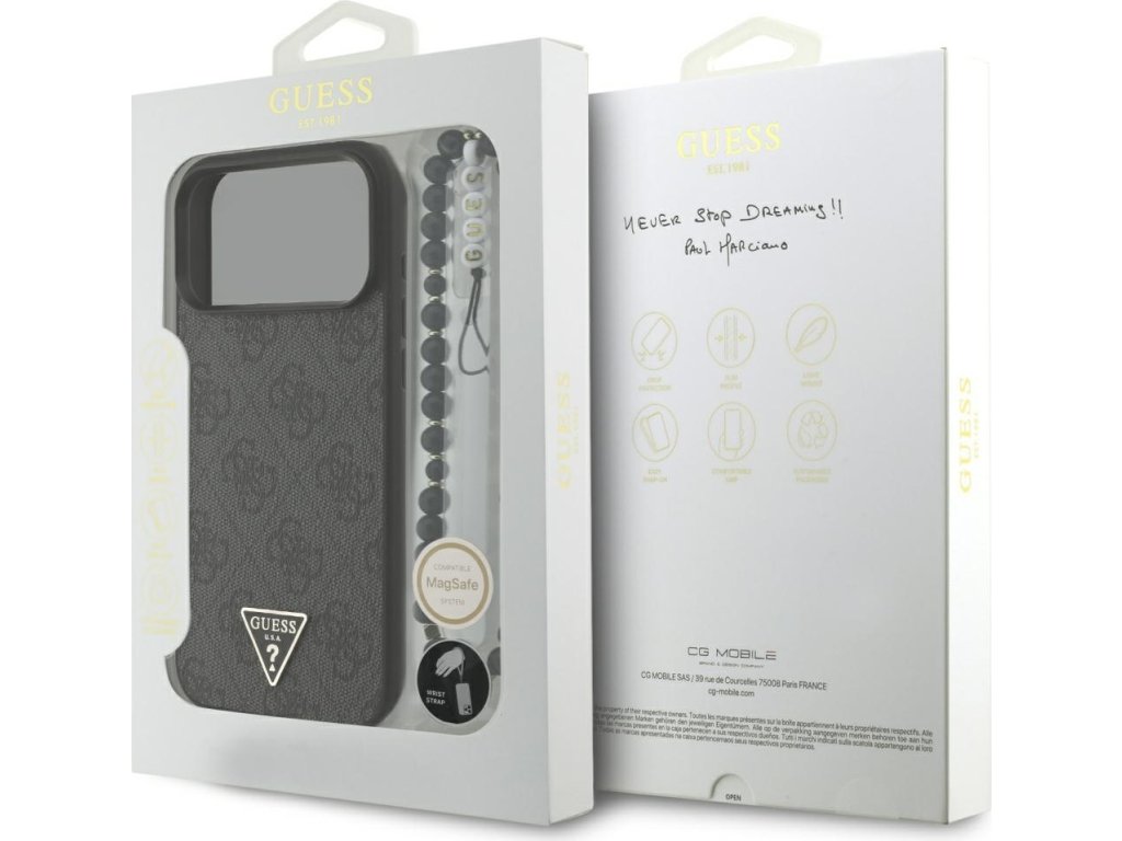 Pouzdro Guess 4G Strap Triangle Logo MagSafe pro iPhone 17 Pro Max černé