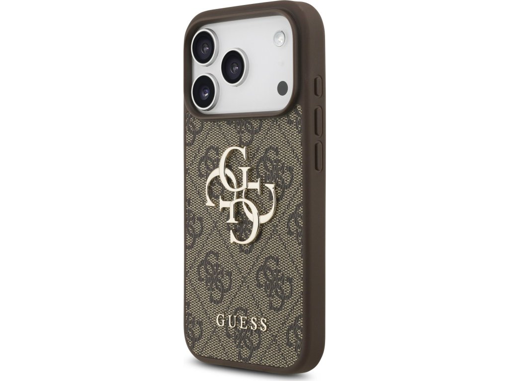 Guess PU 4G Metal Logo Strap Zadní Kryt pro iPhone 17 Pro Brown