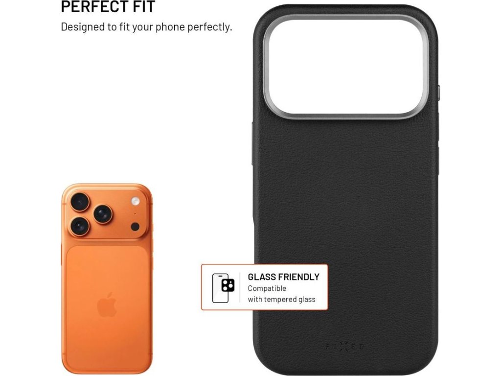 Kryt FIXED MagLeather pro Apple iPhone 17 Pro, z veganské kůže s podporou MagSafe, černý