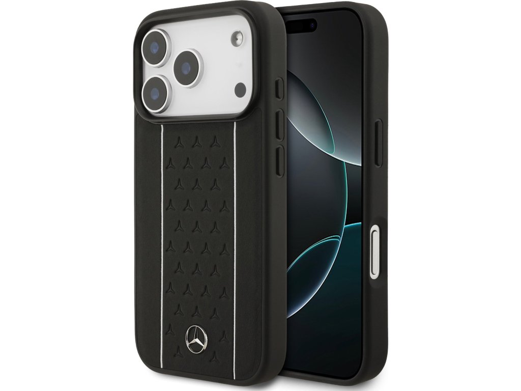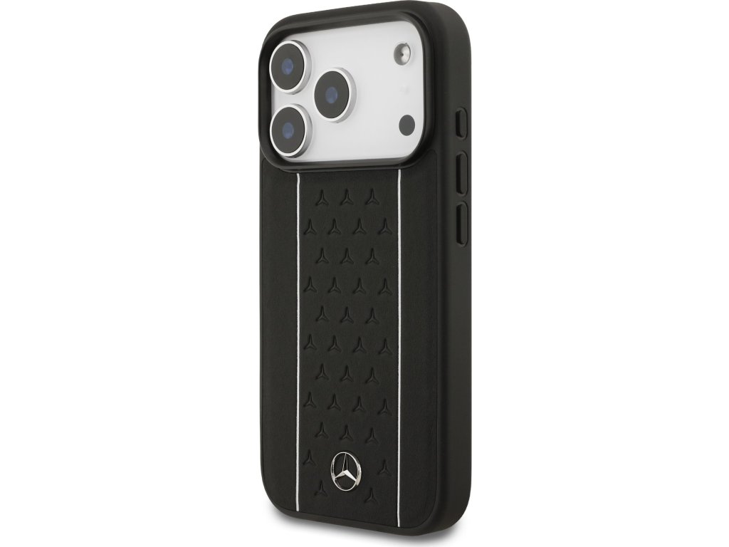 Mercedes Leather Star Pattern and Stripes MagSafe Zadní Kryt pro iPhone 17 Pro Black/White