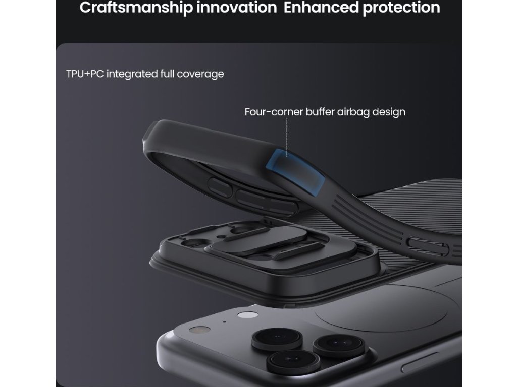 Nillkin CamShield PRO je unikátní kryt s posuvným krytem čočky fotoaparátu. Navíc je oproti klasickému CamShield unikátní v tom, že se skládá ze dvou materiálů. Záda krytu jsou vyrobena z pevného a odolného plastu a to včetně krytu fotoaparátu. Rámeček krytu je vyroben z měkčeného TPU plastu, pro nejlepší ochranu okrajů a rohů telefonu. Oba dva materiály jsou vysoce odolné proti opotřebení, ale také proti otiskům prstů a mastnotě. Přesné výřezy na ovládací prvky a potřebné konektory zajišťují pohodlnou obsluhu telefonu. Vlastnosti: - materiál rámečku TPU - materiál zadní strany PC - posuvný kryt pro ochranu čočky fotoaparátu - perfektně padne na daný typ telefonu - měkčený rámeček pro maximální ochranu