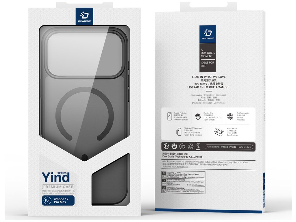 Dux Ducis Yind je elegantní a odolné pouzdro navržené speciálně pro iPhone 17 Pro. Kombinuje matný polykarbonátový (PC) zadní panel s flexibilním TPU rámem, což nabízí bezpečný úchop a účinnou ochranu proti poškrábání a otiskům prstů. 38 vestavěných magnetů zajišťuje plnou kompatibilitu s MagSafe a stabilní uchycení příslušenství. Rohové vzduchové polštáře poskytují vynikající tlumení nárazů a ochranu při pádu. Je to perfektní kombinace bezpečnosti, pohodlí a minimalistického stylu v klasické černé barvě.