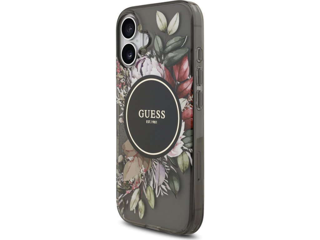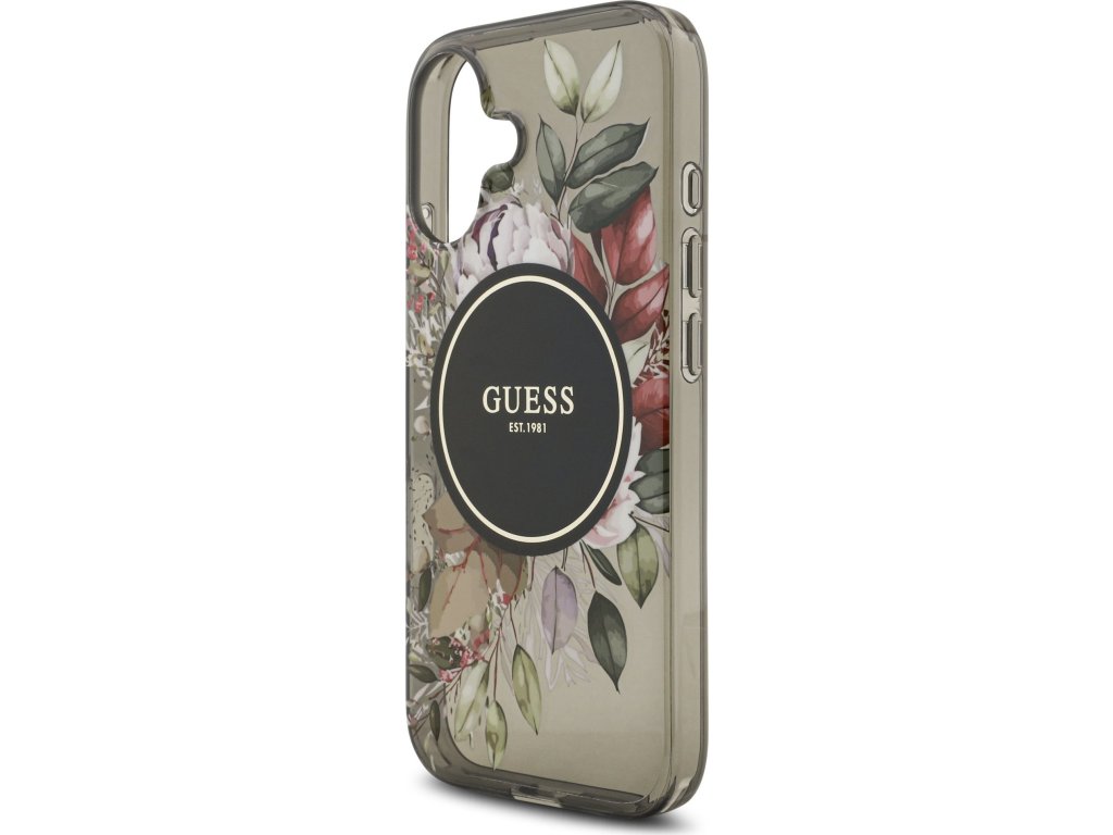 Guess IML Flowers Strap MagSafe Zadní Kryt pro iPhone 17 Black