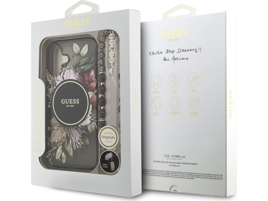 Guess IML Flower Pearl Strap MagSafe zadní kryt na telefon je skvělým doplňkem pro všechny milovníky stylu a praktičnosti. Tento kryt je vyroben z kombinace pevného PC plastu na zadní straně a TPU měkkého plastu na bocích, což vytváří dokonalou symbiózu odolnosti a pohodlí. Díky přesnému tvaru perfektně sedí na telefonu a umožňuje snadný přístup ke všem tlačítkům a konektorům. Tento kryt podporuje technologii MagSafe, což znamená, že je kompatibilní s bezdrátovým nabíjením a dalšími MagSafe doplňky. Design krytu vyniká logem Guess ve zlatém kruhu, což z něj činí nejen praktický, ale i stylový doplněk, který skvěle doplní váš outfit. Součástí krytu je i korálkové poutko, které plní nejen estetickou funkci, ale zajistí také bezpečné držení telefonu v ruce. Pokud hledáte kryt, který kombinuje eleganci a funkčnost, je tento kousek od GUESS tou pravou volbou pro vás. Klíčové vlastnosti: - Originál Guess - Poutko kolem zápěstí součástí krytu - Lehký a odolný kryt z prémiového PC a TPU - Skvěle se drží v ruce a neklouže - Podpora MagSafe - Přesně kopíruje tvar telefonu a umožňuje snadný přístup k tlačítkům a konektorům. - Chrání telefon před prachem a poškrábáním - Stylový a funkční doplněk pro váš telefon i outfit