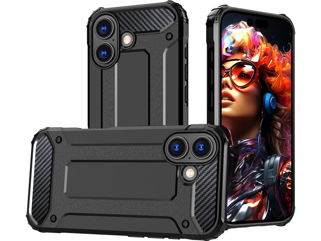 Hybridní kryt Armor X pro iPhone 17 se stojánkem, kompatibilní s MagSafe – černý Pouzdro Hybrid Armor X pro iPhone 17 kombinuje robustní ochranu, moderní design a funkční prvky.
