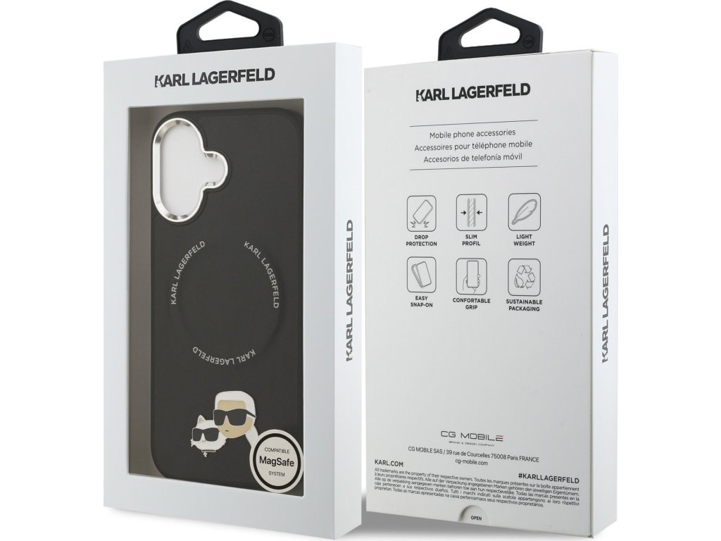 Karl Lagerfeld PU Karl and Choupette Heads Pins MagSafe Zadní Kryt pro iPhone 17 Black