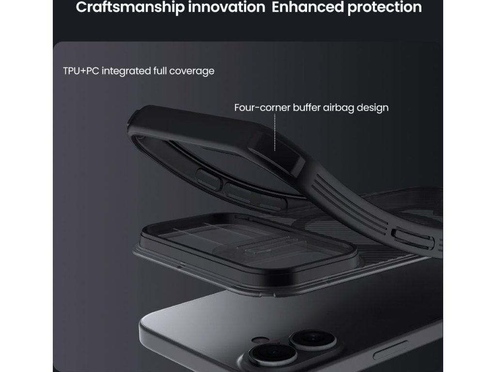 Pouzdro Nillkin CamShield Pro je ochranné magnetické pouzdro určené pro iPhone 17. Vestavěný magnetický kroužek umožňuje pohodlné bezdrátové nabíjení a příslušenství kompatibilní s MagSafe bez nutnosti sundávání pouzdra. Dvoumateriálová konstrukce – pevný PC a flexibilní TPU – zvyšuje odolnost telefonu vůči pádům a nárazům. Průhledná černá povrchová úprava zachovává viditelný design zařízení a zároveň mu dodává moderní, technický vzhled.