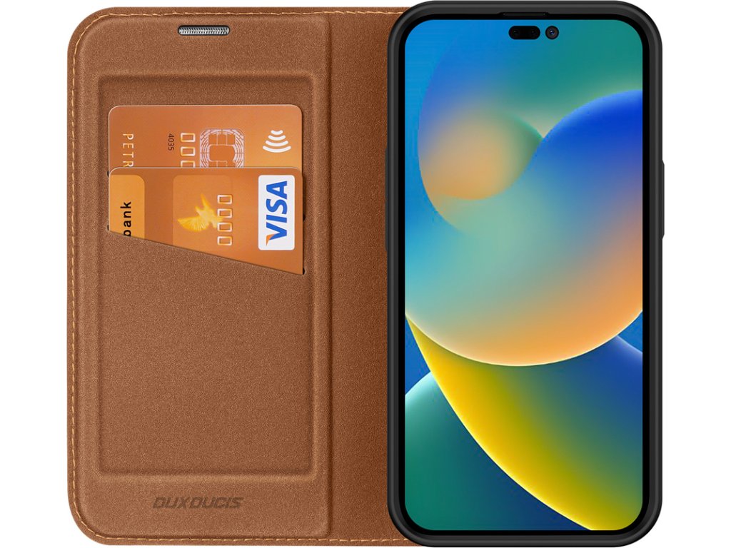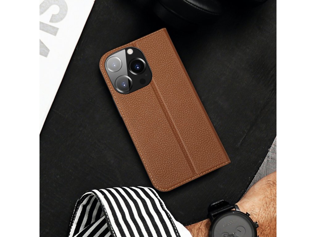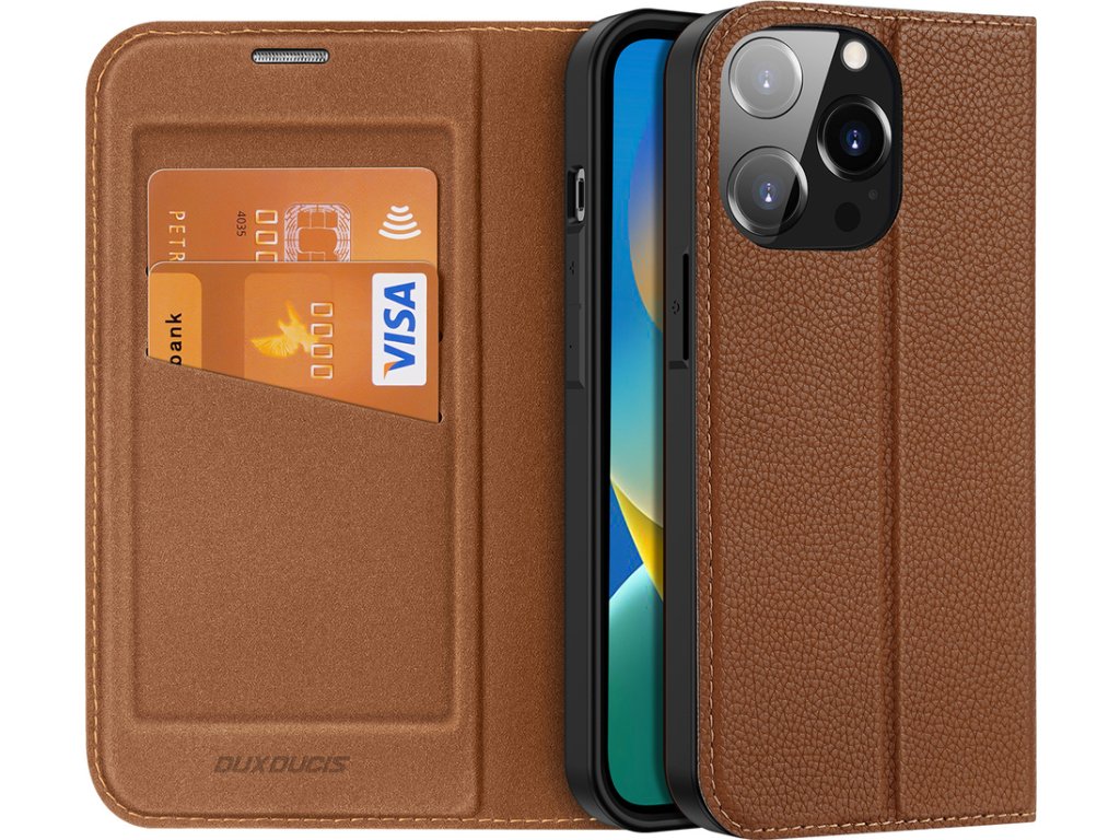 Pouzdro Dux Ducis Skin X2 pro iPhone 14 Pro s magnetickou klopou hnědé