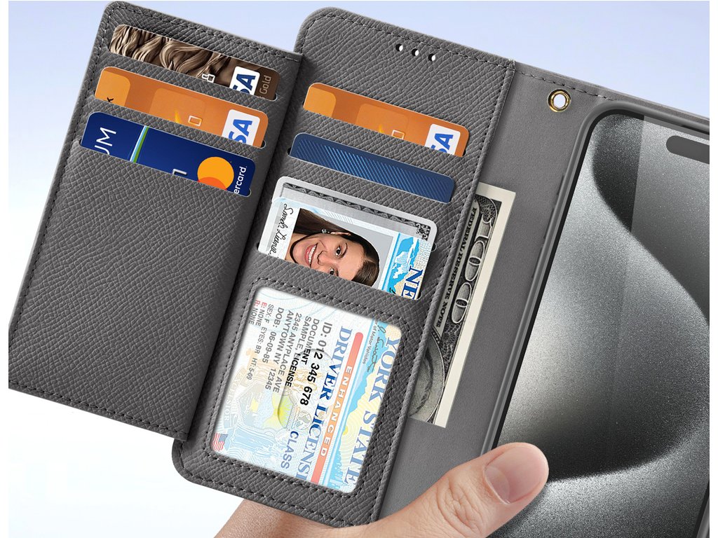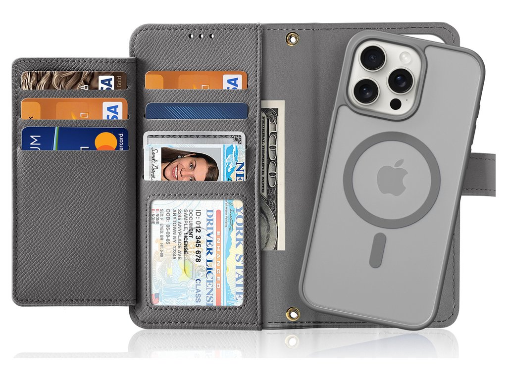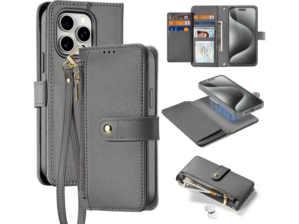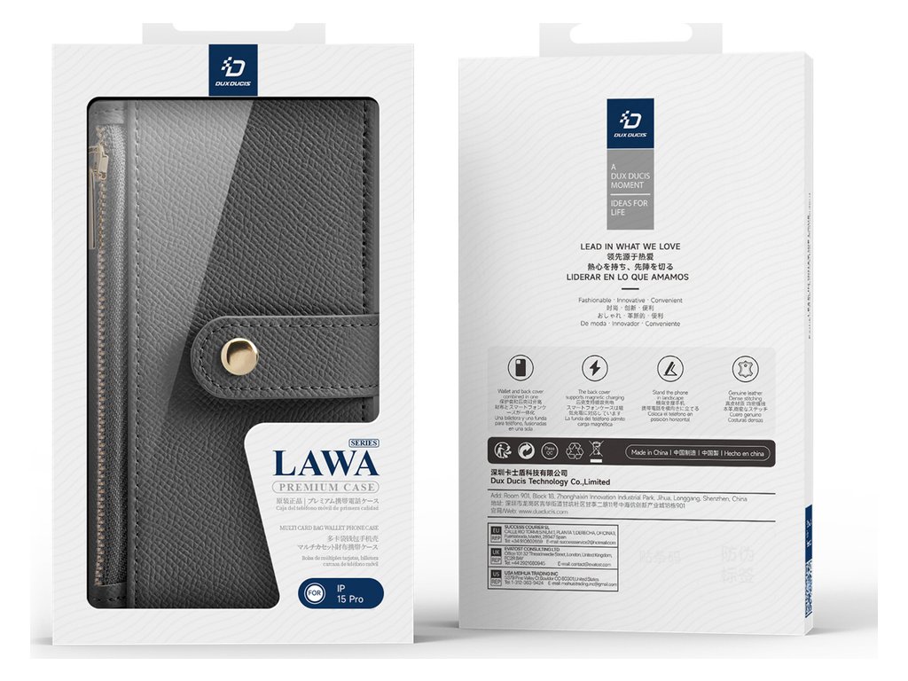 Kožené pouzdro Dux Ducis Lawa pro iPhone 15 s odnímatelným magnetickým peněženkou – šedé Dodá vašemu smartphonu styl a funkčnost s koženým pouzdrem Dux Ducis Lawa Wallet s odnímatelnou magnetickou…