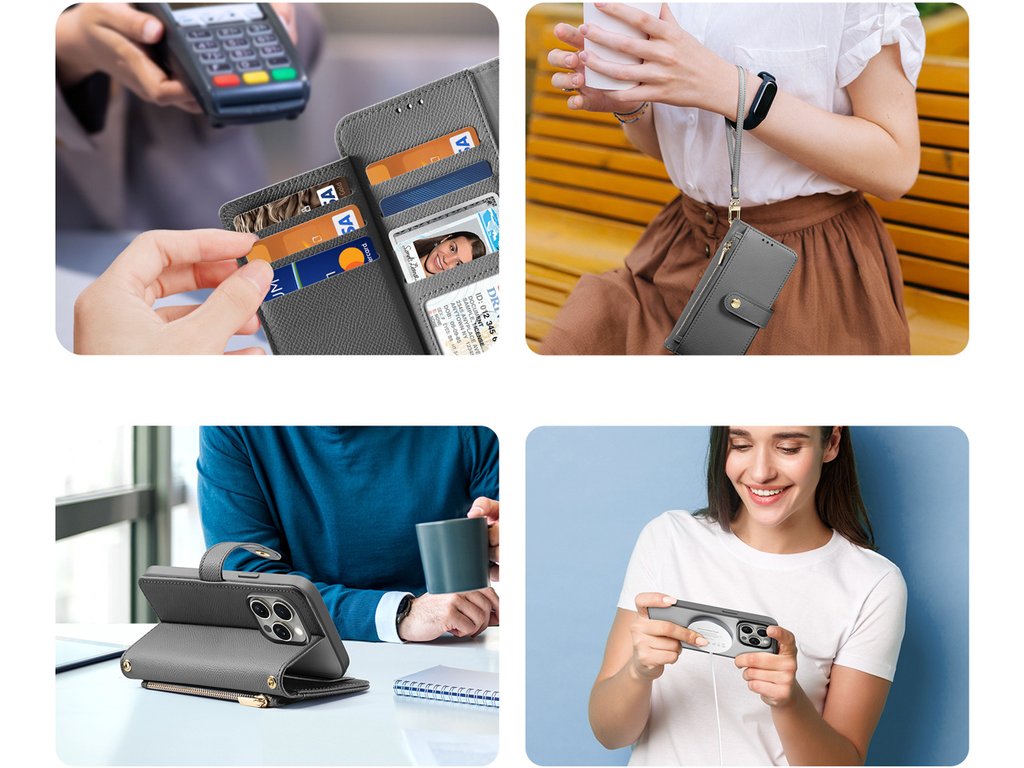 Peněženka na zip vám umožní pohodlné a bezpečné uložení nezbytností, jako jsou karty a hotovost. Magnetický mechanismus vám umožní ji rychle odejmout, když ji potřebujete.