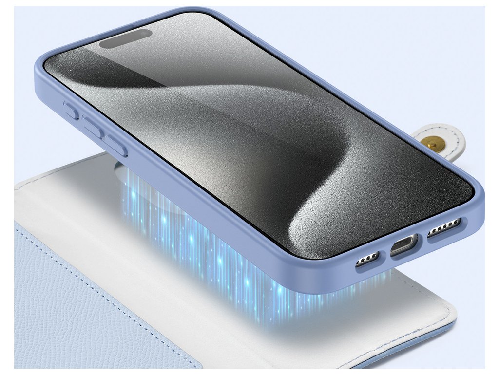 Kožené pouzdro Dux Ducis Lawa pro iPhone 15 s odnímatelným magnetickým peněženkou – modré