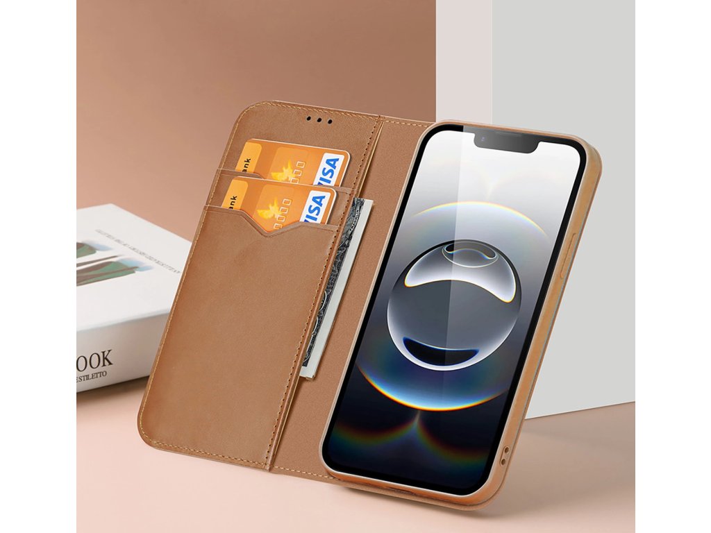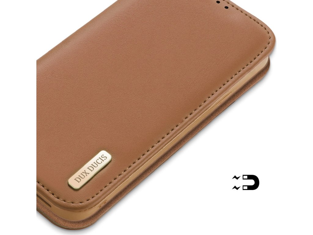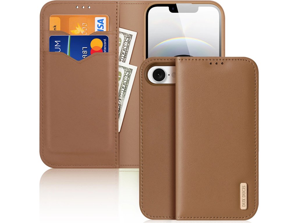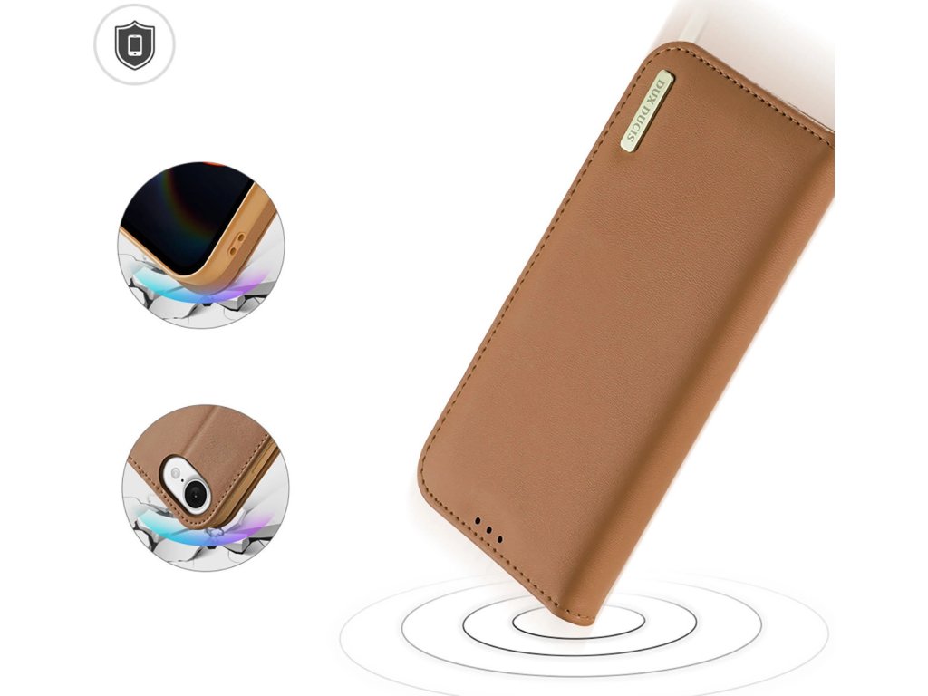 Pouzdro Dux Ducis Hivo pro iPhone 16e s flipem a RFID ochranou - hnědé