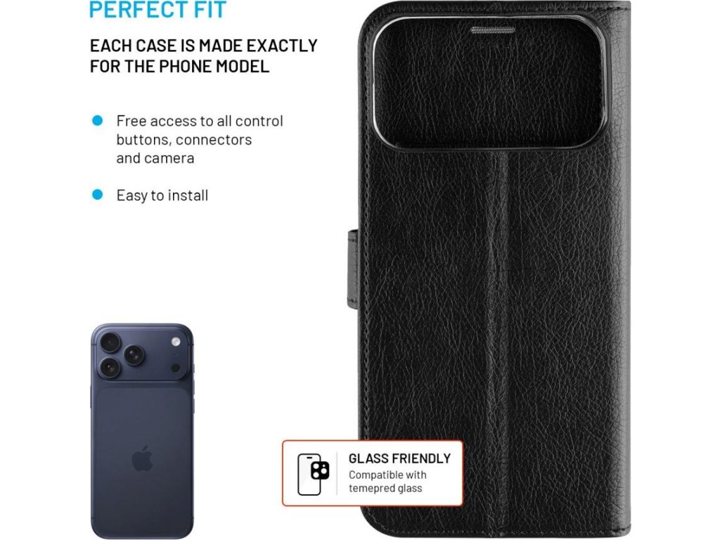 Pouzdro typu kniha FIXED Opus pro Apple iPhone 17 Pro Max, černé