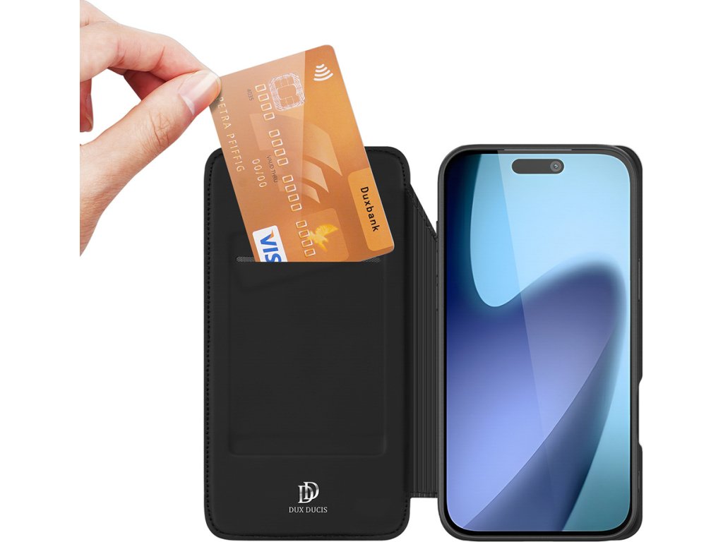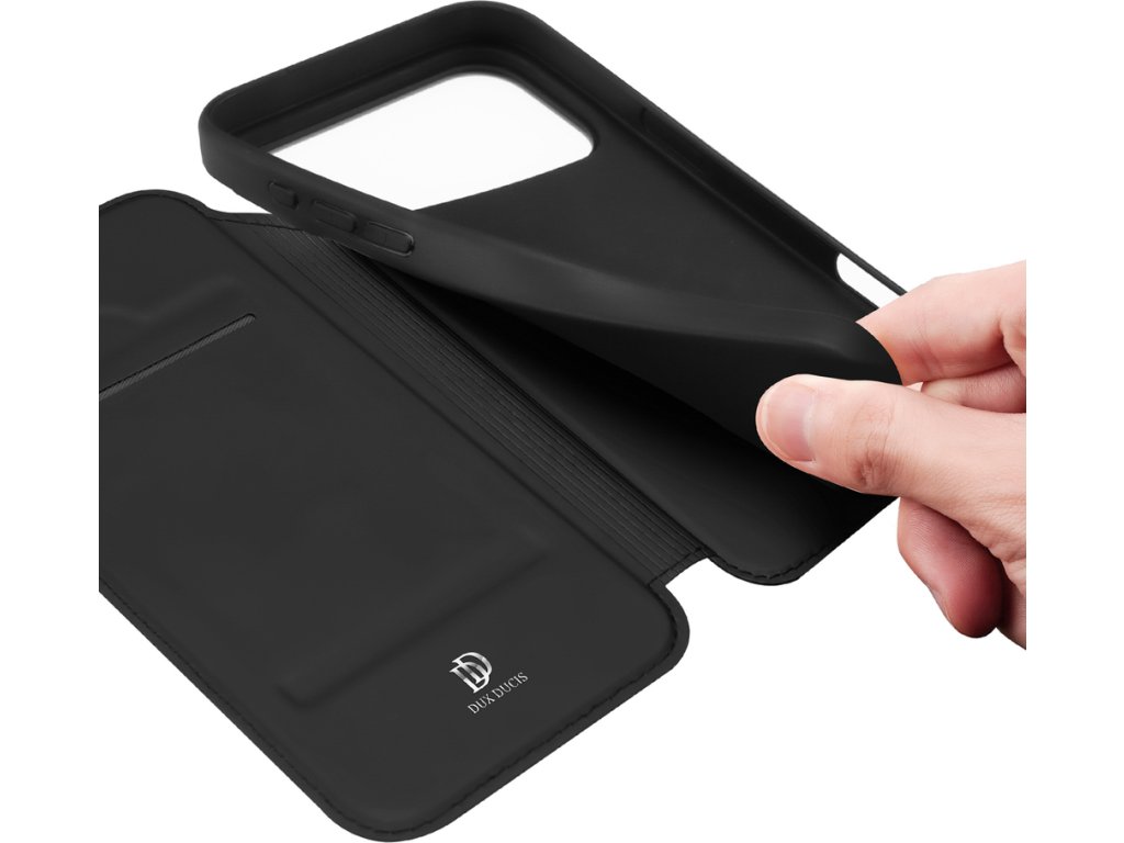 Pouzdro Dux Ducis Skin Pro pro iPhone 17 Pro s flipem a slotem na karty - černé